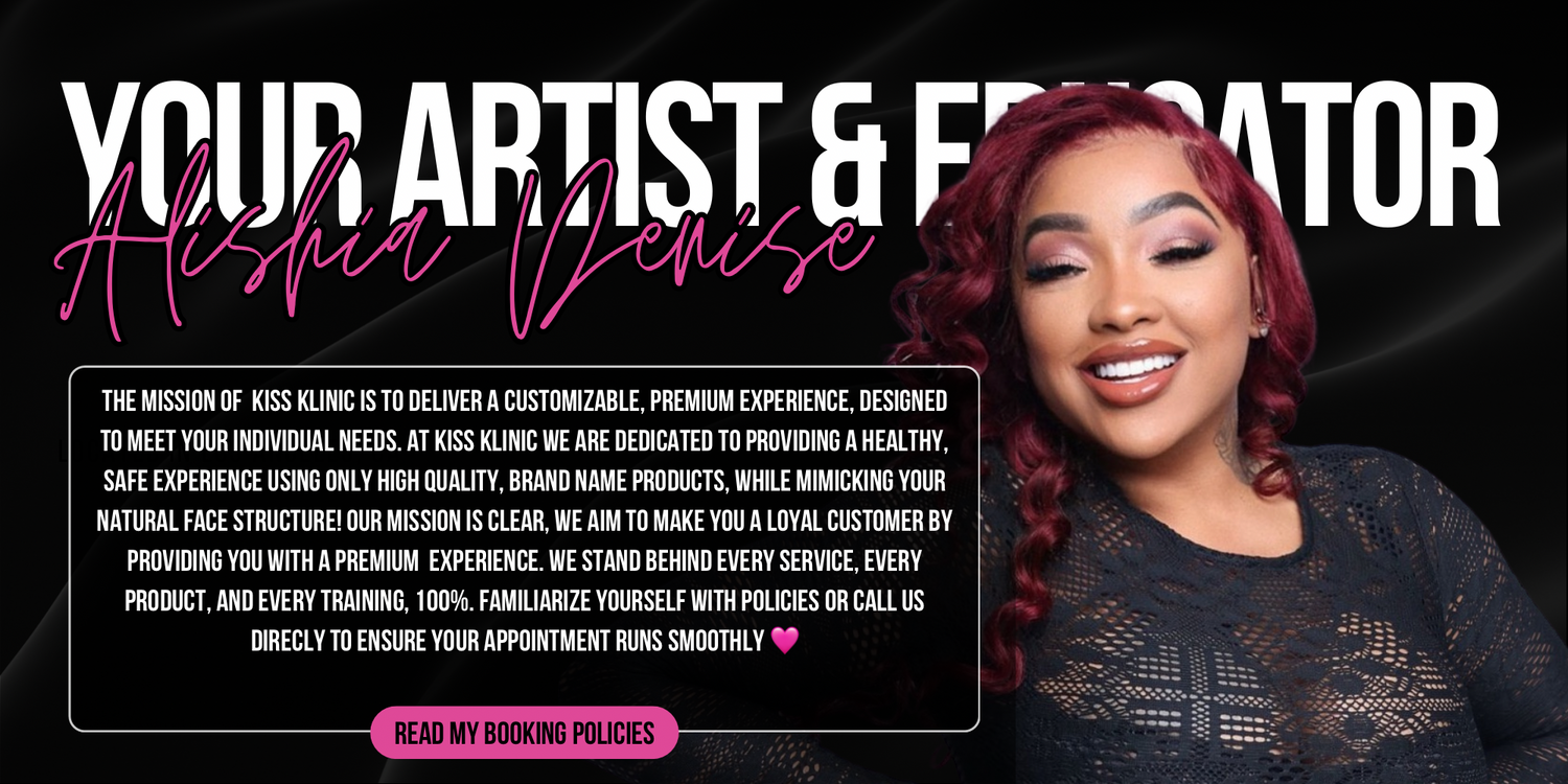 The mission of Kiss Klinic is to deliver a customizable, Royal experience, designed to meet your individual treatment, customer service, & training & needs. At Kiss Klinic we are dedicated to providing a healthy, safe experience using only high quality, brand name products, while mimicking your natural face structure! Our mission is clear, we aim to make you a loyal customer by providing you with a Royal experience. We stand behind every service, every product, and every training, 100%.